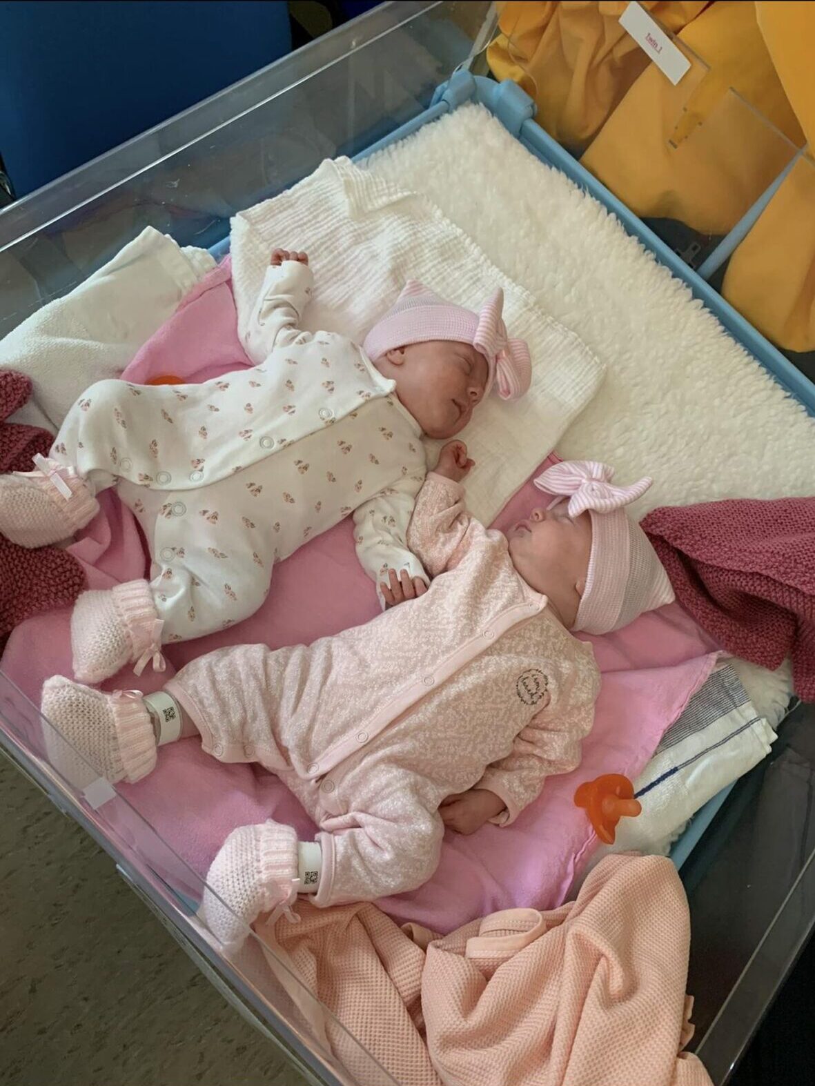 Her mum Karen Finlayson was in with her for the birth, and then the girls’ dad Aron was allowed to visit once they were born.