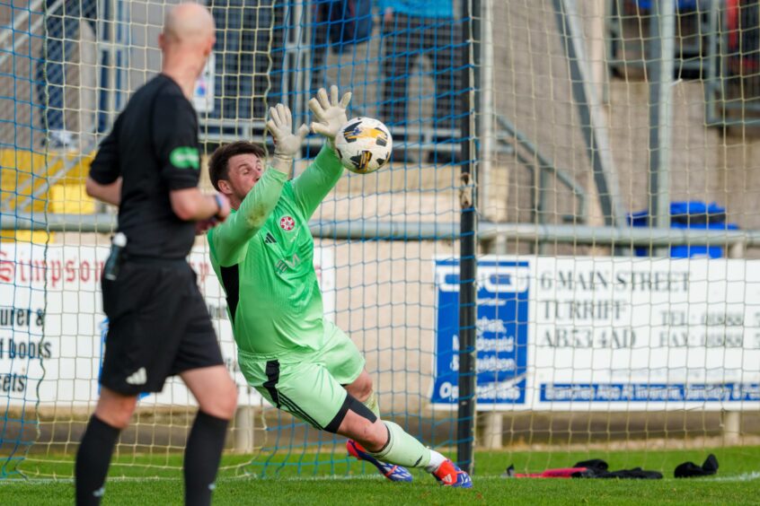 Referee Scott Leslie pointed to the spot, but Turriff captain Andrew Watt was unable to put his side ahead as Knight comfortably saved his effort.