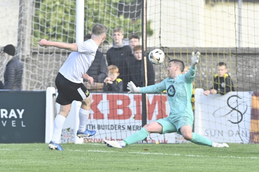 Within two minutes Strathspey equalised as Zach MacPhee’s free-kick was dropped by goalkeeper Lewis Munro, which allowed Josh Race to score.