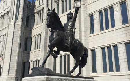 Marischal College with the statue of Robert the Bruce, Aberdeen [VisitScotland]