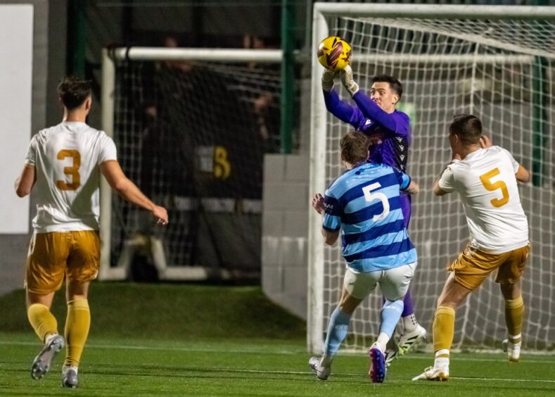 As time ticked down Duell headed over as Dee looked for a second, while the closest Huntly came to an equaliser was in the third minute of stoppage time when sub Callum Murray’s shot from 14 yards was deflected over the crossbar by Davidson.