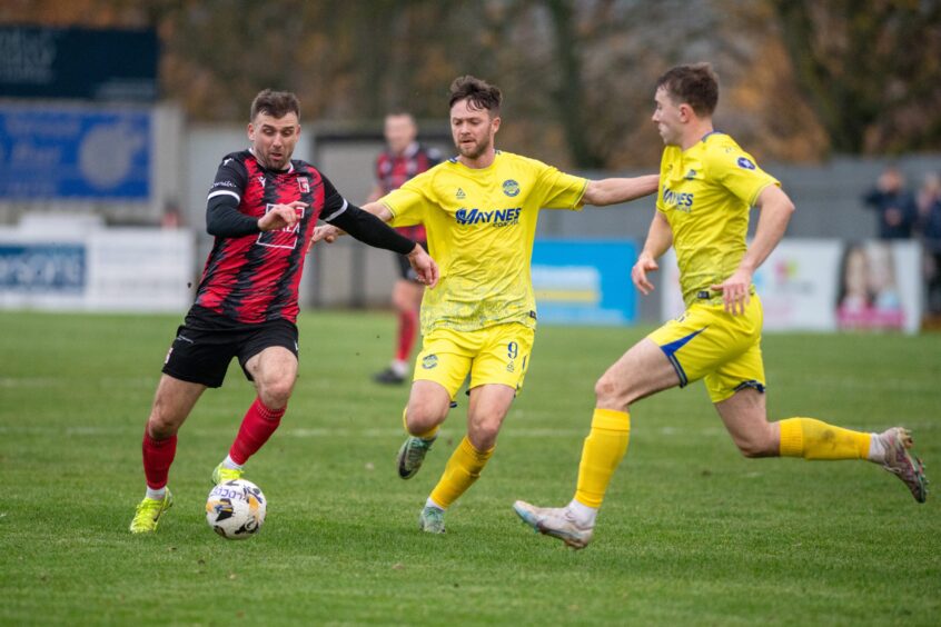 Lossie made it 3-0 in the 73rd minute when Liam Harvey’s free-kick from just outside the box bounced over the diving Black and into the middle of the goal.